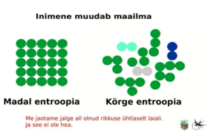 Räägitakse palju sellest, kuidas süsiniku kontsentratsioon on pidevas tõusutrendis. Peamiselt seetõttu, et inimkond on suurendanud entroopiat ja seda just fossiilkütuste põletamisega. Põlemiseks on vaja hapniku ning seda võetakse atmosfäärist. Atmosfääris olev hapnik on aga see sama hapnik, mida vajame elamiseks. Põletamise saaduseks on süsinikdioksiid ja vesi. Ehk võtame endale eluksvajaliku hapniku ning põletame selle süsihappegaasiks. Seda põletatud süsihappegaasi, mis on võetud maapõuest ei seota enam sinna tagasi ja see hakkab atmosfääri kogunema ja tõstab süsiniku kontsentratsiooni.