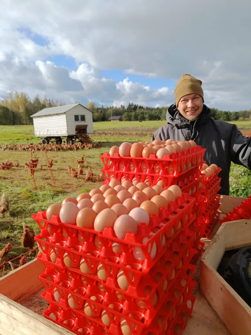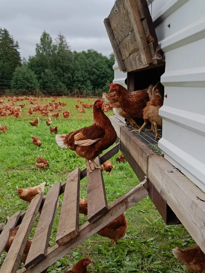 Ahisilla taluaias on rohumaakanad kaks hooaega olnud. Esimesel aastal katsetasime 150 munakanaga süsteemi läbi ning 2023. aastal tõstsime kanade arvu 800 peale, mis oli meie võimaluste juures optimaalne arv.