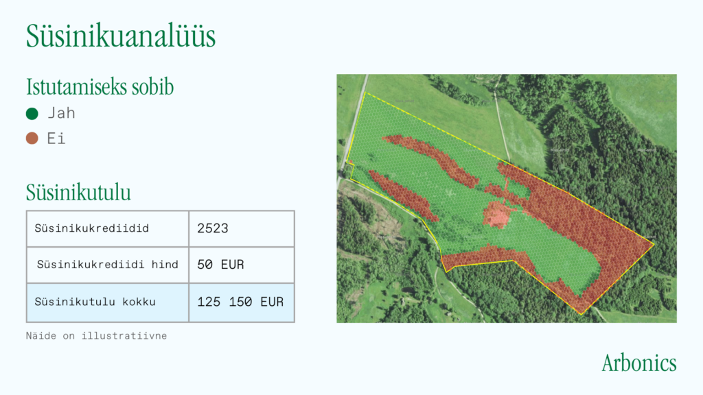 Süsinikukrediite luuakse ka läbi puude istutamise varem metsata olnud maalapile, metsamajandamise viiside optimeerimise ja metsade kaitse alla võtmise. Arbonics aitab maaomanikul välja selgitada, milline osa maast on uusmetsastatav ja milline puuliik sinna sobiks. Lisaks arvutatakse välja süsiniku sidumise potentsiaali järgi teenitav lisatulu ajas.