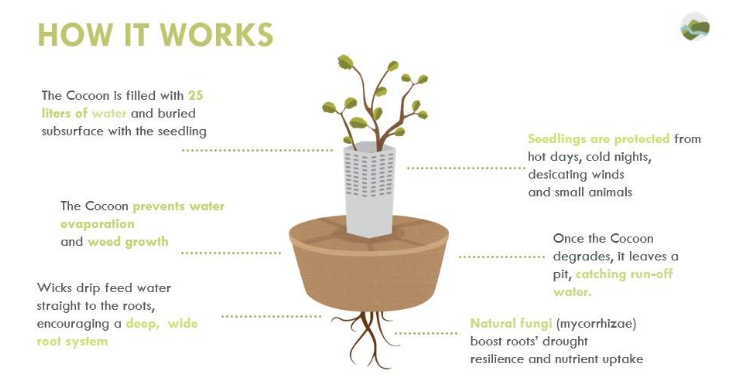 CREAF koostöös rahvusvaheliste ekspertidega testib biolaguneva sõõrikukujulise pappkarbi efektiivsust kõrbestunud või väga degradeerunud aladel taimestiku taastamiseks. Karpe kutsutakse „kookoniteks“ (ing ’Cocoon’) ning nende abil on Vahemere piirkonnas ja Kanaaridel istutatud üle 30 000 puu. Taimed istutatakse koos „kookoniga“, mis on täidetud veega, et niisutada ja kaitsta taime esimesel kasvuaastal, kui taim on kõige haavatavam. Aja möödudes komposteerub anum mullas täielikult.