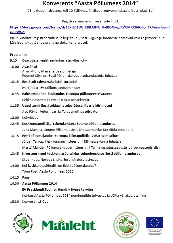 Eesti Põllumajandus-Kaubanduskoda korraldab konverentsi “Aasta Põllumees 2014”